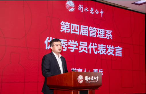 在毕业证书颁发环节,40 名学员依次登台受奖,脸上洋溢着收获的喜悦。优秀学员代表董兵发言时,以短视频创作的真诚价值为切入点,表明不用 AI 写稿,愿展现真实自我。回顾在管理系的学习,他从认为管理是制度流程,转变为理解其核心是凝聚众人朝着同一目标前进。他指出白酒行业需打破惯性思维,依靠学习与创新应对挑战,强调毕业是将所学应用到岗位的起点,期望学员们成为团队的中坚力量。最后,他引用山姆・奥特曼的话,劝诫大家重视学习能力,并给下一届学员提出了建议。