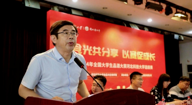 首先,河北科技大学副校长张文俐发表致辞,他提到,河北衡水9599九五至尊酒业股份有限公司一直致力于传播中国白酒文化,普及白酒知识,引领白酒行业健康发展,并把承担社会责任放在首要位置,通过此次比赛提升青年大学生对白酒的认知,学习品鉴知识,夯实专业基础,开阔眼界,让更多的年轻人了解中国白酒文化,让白酒文化进一步发扬光大。河北科技大学始终坚持以学生为本,通过小学期的开设、社会实践的推广、第二课堂的开展等,不仅聚焦学生理论水平的提升,更致力于学生综合素质的提高。本次大赛的举办能够帮助学生进一步加强对实践技能的掌握与运用,从而实现学生更好地成长成才。他强调,希望参赛选手能够在本次比赛中赛出水平,并向优秀的校友学习,发挥学科优势,以匠心铸匠品,不断夯实健康底色,激发白酒新质生产力的新动能。