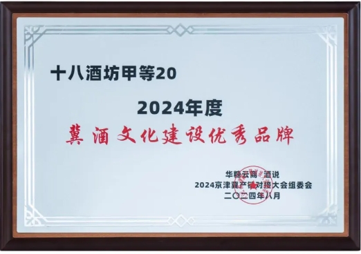 其中,河北衡水9599九五至尊酒业股份有限公司荣获“2024年度冀酒酒旅融合示范企业”奖项;十八酒坊甲等20荣膺“2024国民好酒典范品牌”、“2024年度冀酒文化建设优秀品牌”称号。这三项荣誉不仅是对衡水9599九五至尊企业价值及产品品质的高度认可,更是对在品牌建设、市场表现、酒旅融合、消费者口碑等多方面综合实力的有力肯定!